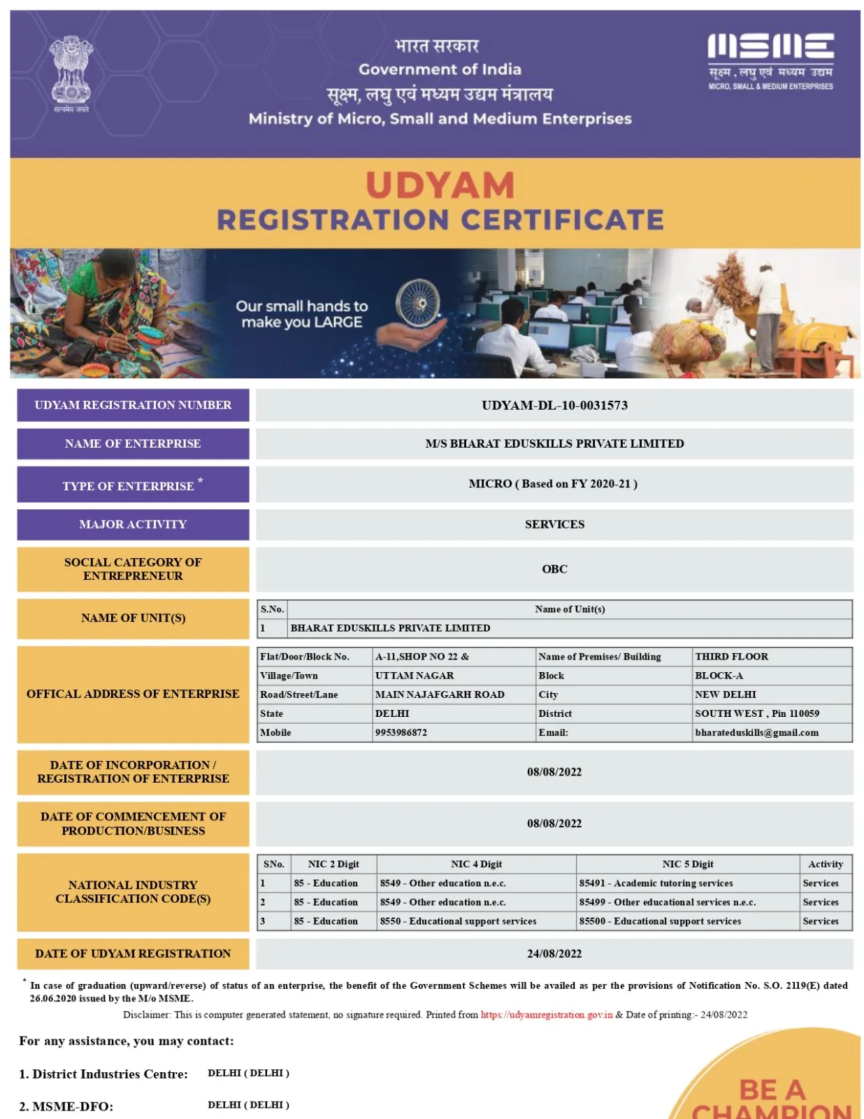 Bharat eduskills private limited a 11-Year-old premier Institute run and managed by AVG Management Services Private Limited that serving education and Practical training to students all over India since 2014. Bharat eduskills private limited is an effort to create abilities in job seeking students, after passing 10th, 10+2, undergraduate and fresh graduates, Postgraduate and Professional Choosing the right career program is one of the most important decisions that you will make in your life. In the highly competitive global environment, the role of communication and public speaking will be crucial for aspirants to flourish in the 21st century. Keeping the future global business competencies in mind, has formulated a unique Scheme of Education and Training. The new scheme has been upgraded, revised and refined keeping in mind the Indian & global requirements, aligned with Practical Training of the subjects, which will prepare and groom the new professionals to match the future requirements.